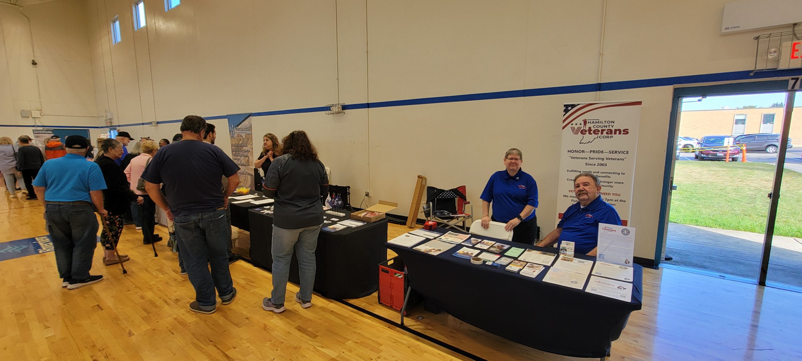 Hamilton County Veterans Corp Secretary Lynn Epperson said, “Being able to connect just one person in their time of need to the services or resources that will address their needs, is such a heartwarming experience. We are so thankful of all our resource partners for being there, caring for our community. And oh yes, we did help many more than one today….”